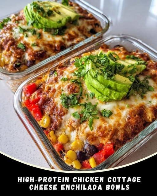 High Protein Chicken Cottage Cheese Enchilada Bowls
