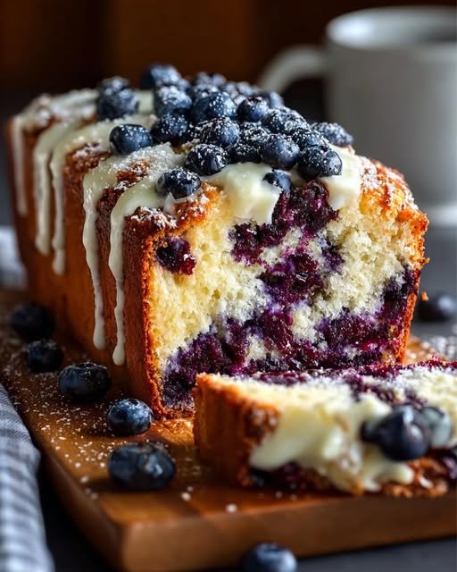 🍋 Lemon Yogurt Blueberry Loaf Cake