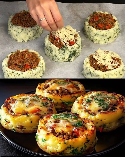 Stuffed Mashed Potato Nests