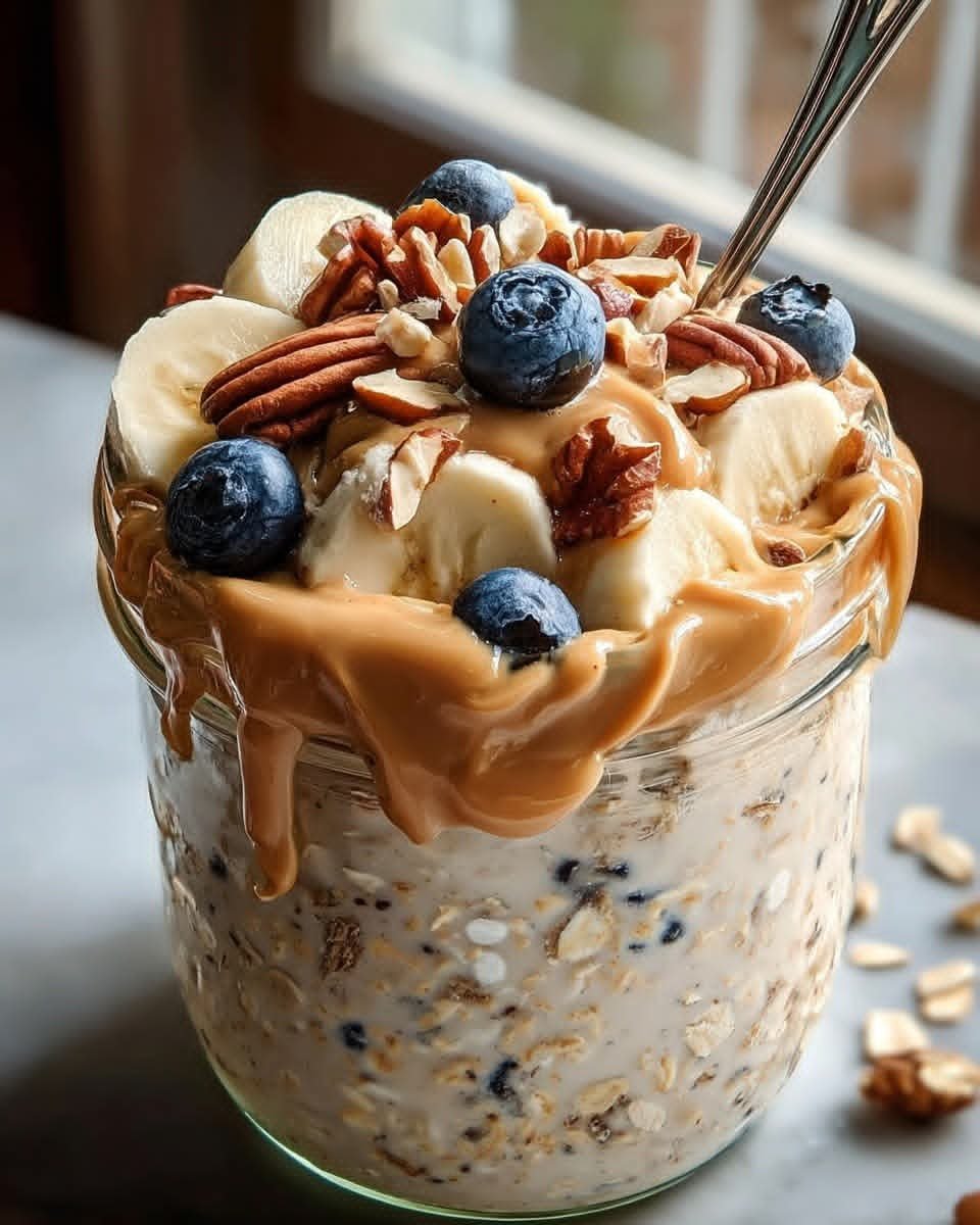 🥜🍌 Peanut Butter Banana Overnight Oats with Blueberries 🫐🥄