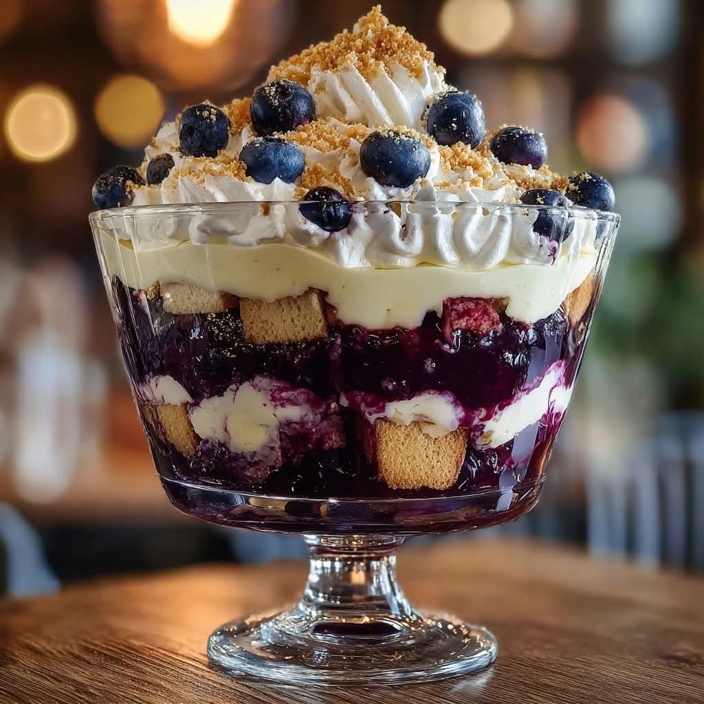 🍪 Sprinkle crushed biscuits and add fresh blueberries.