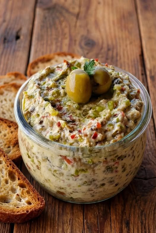 Spoon into a bowl, drizzle lightly with olive oil, garnish with olives or parsley. Serve with toasted bread, crostini, crackers, or veggies.