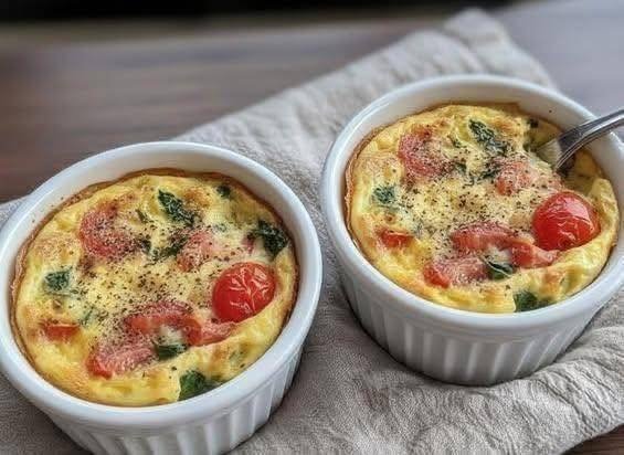 Mix in Add-ins: Stir in the chopped spinach, cherry tomatoes, and cheese. Ensure the vegetables are slightly submerged in the egg mixture.