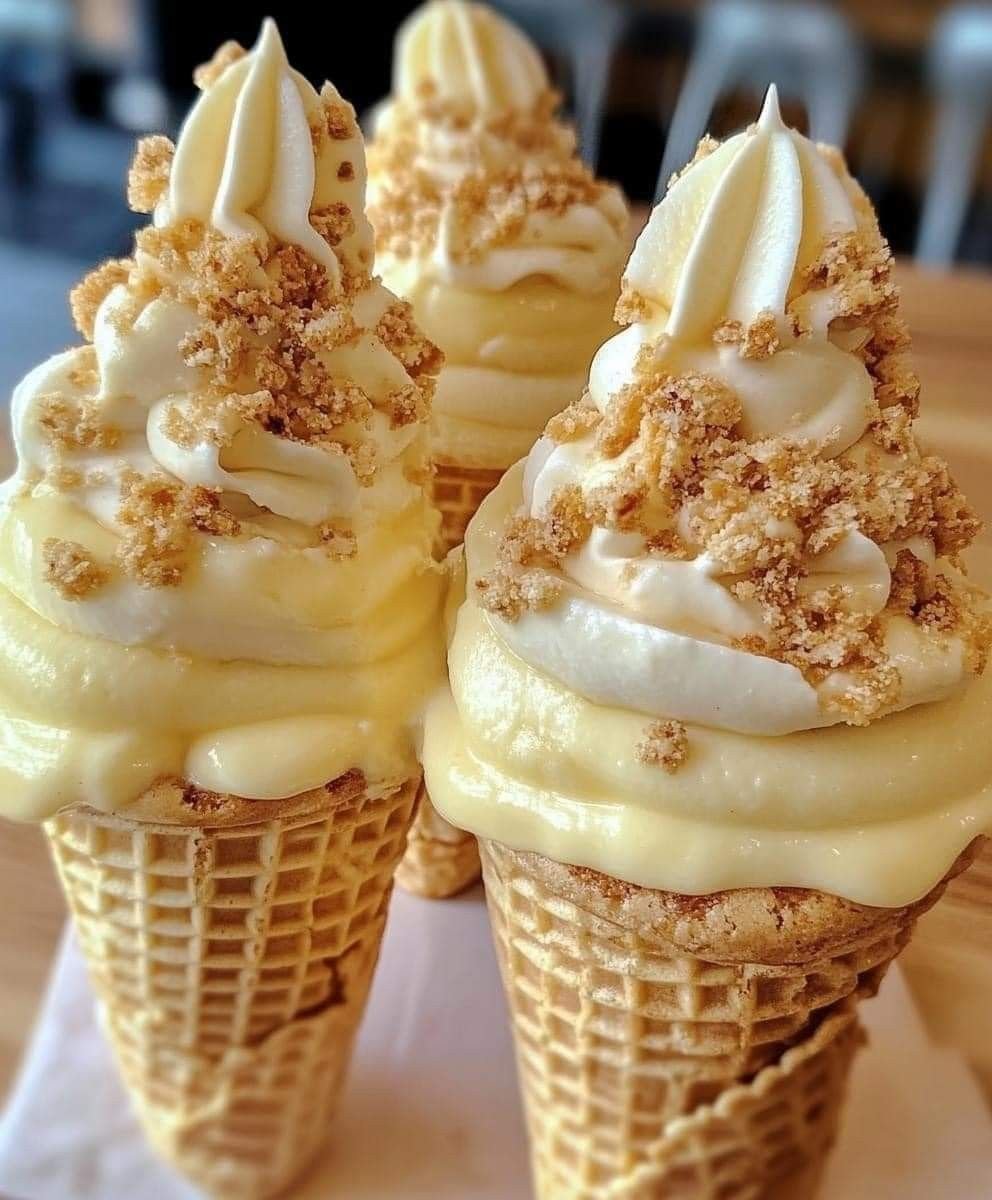 Assembly: While the ice cream is still soft, use a piping bag with a large star tip to swirl the mixture into the waffle cones.