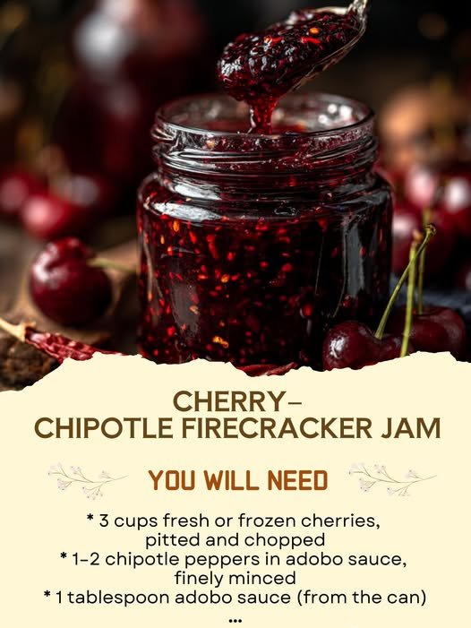 If you are looking for a preserve that refuses to be ordinary, this Cherry–Chipotle Firecracker Jam delivers bold personality in every spoonful. It balances luscious sweetness with smoky depth and a slow-building heat that lingers just enough to keep things interesting.