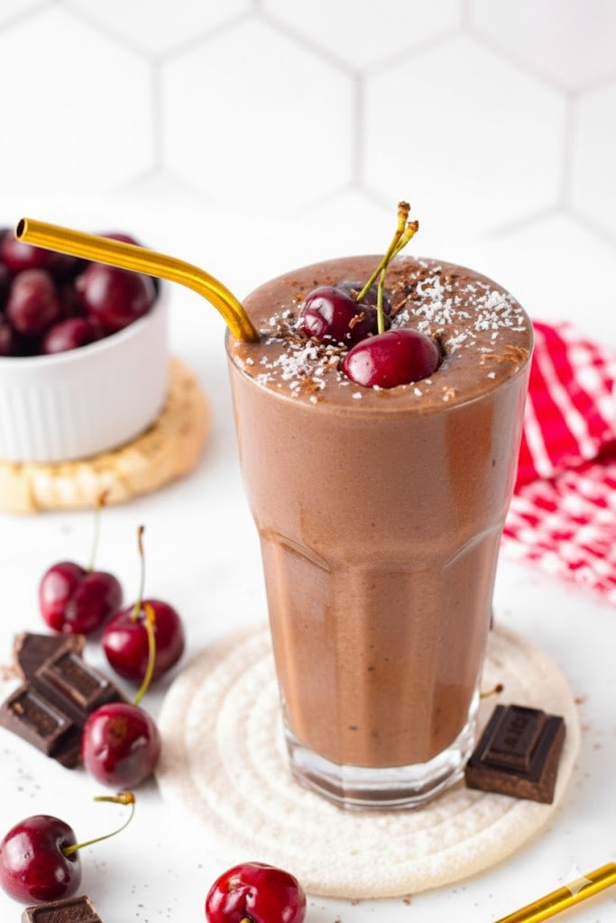 Serve: Pour into a glass and top with a fresh cherry, a sprinkle of cocoa powder, or a few shaved dark chocolate chips for that extra touch shown in your photo!