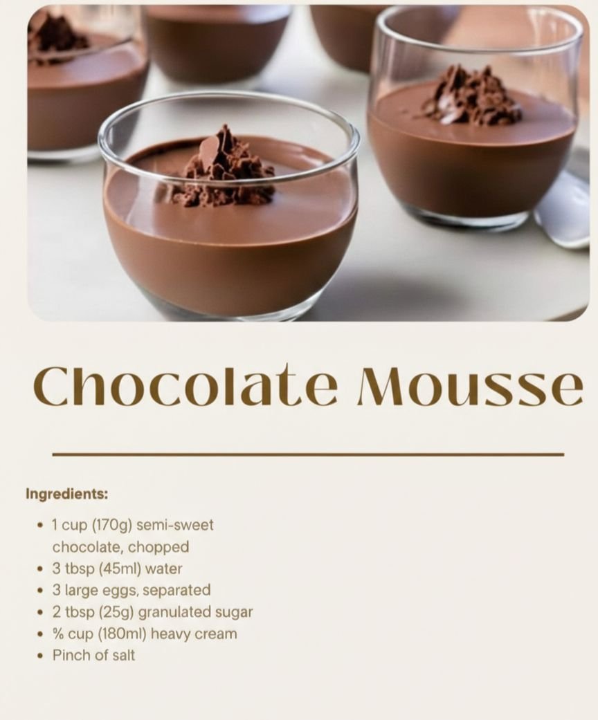 This chocolate mousse is smooth, fluffy, and rich in flavor, made with simple ingredients and gentle folding to keep it airy.