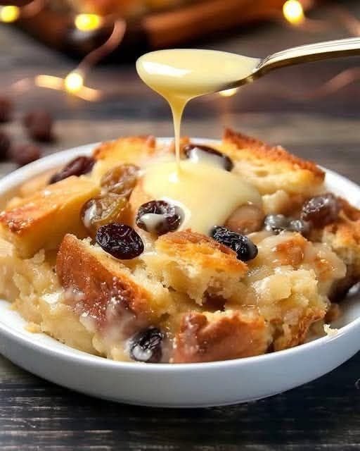 In a separate bowl, whisk together eggs, sugar, vanilla, allspice, and cinnamon. Stir in raisins and combine with the bread mixture. Let sit for 2 hours, stirring occasionally.