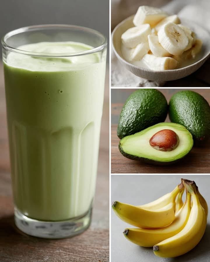 Prepare the Fruit: Peel the banana and scoop out the avocado flesh. If you have time, freezing the banana slices beforehand makes the smoothie much creamier.