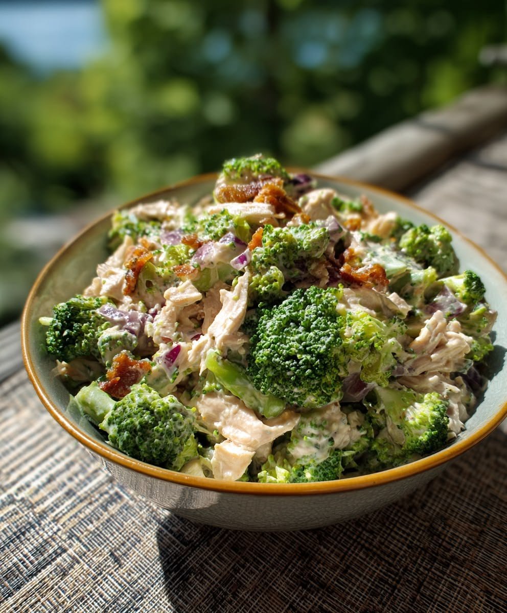 Prep the Base: In a large mixing bowl, combine the shredded chicken, chopped broccoli florets, diced red onion, and the crumbled bacon.