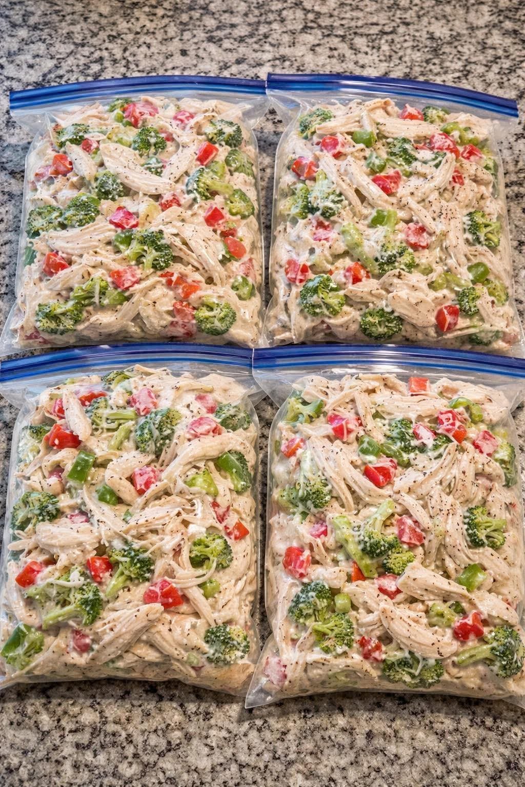 Combine: Add the shredded chicken, broccoli, and peppers to the bowl. Toss everything until the ingredients are evenly coated in the creamy sauce.