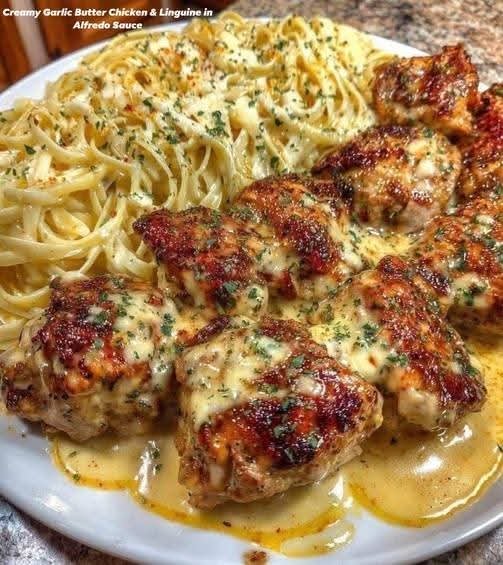 Full recipe >>>Creamy Garlic Butter Chicken & Linguine in Alfredo Sauce ππ§