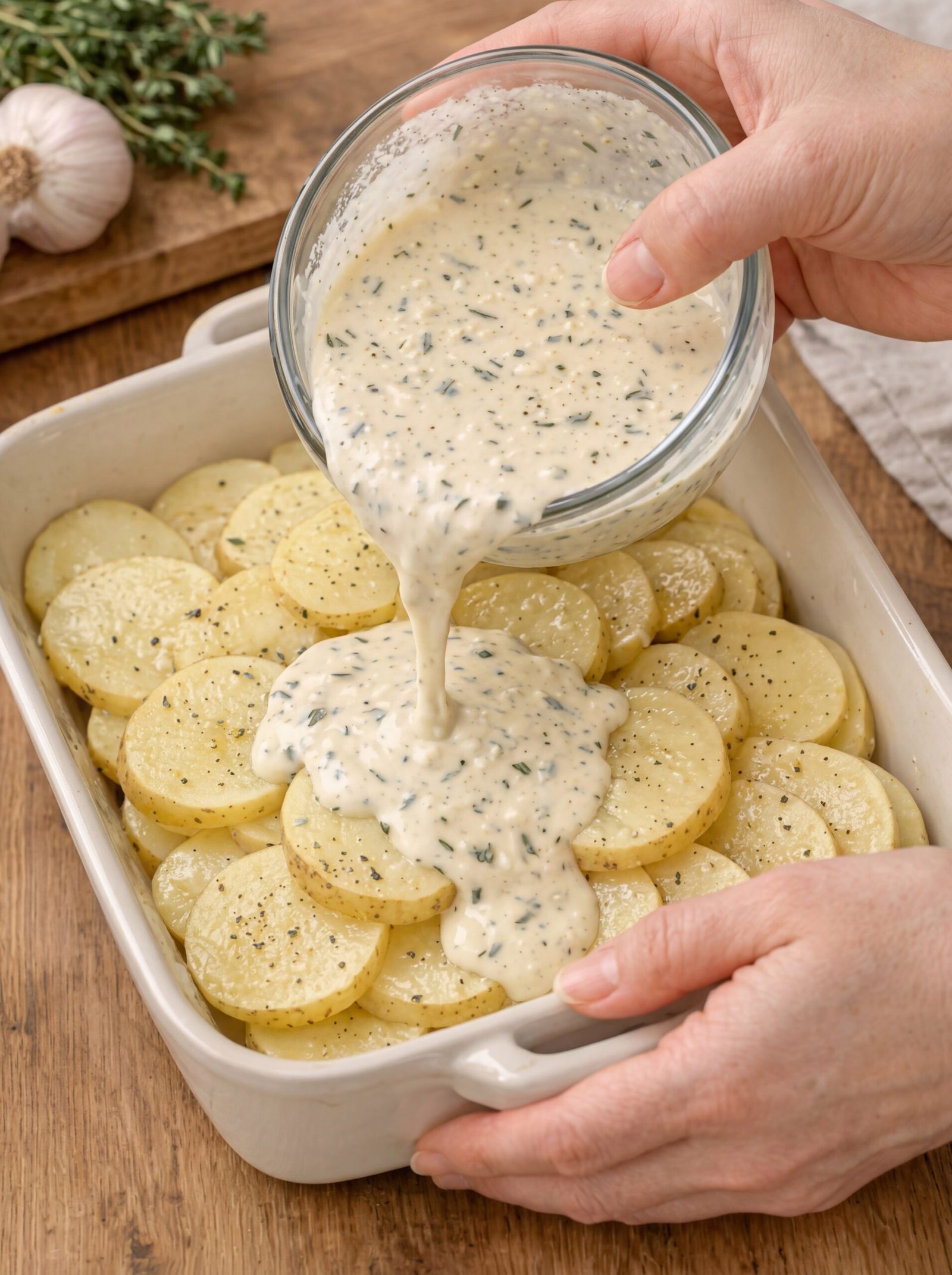 🥔 Creamy Garlic & Herb Scalloped Potatoes