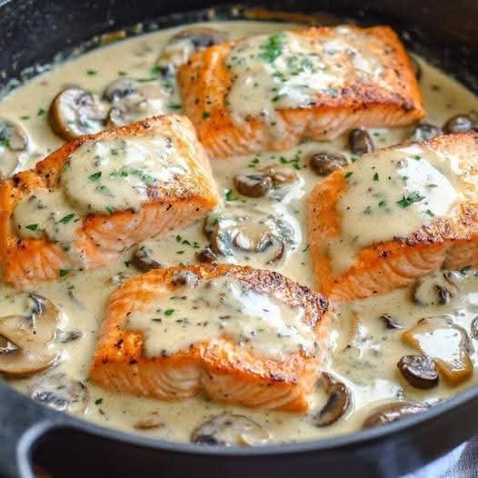 Rich, creamy, and packed with flavor — tender salmon in a garlic mushroom cream sauce that feels restaurant-quality but comes together fast 🍄🧄🐟