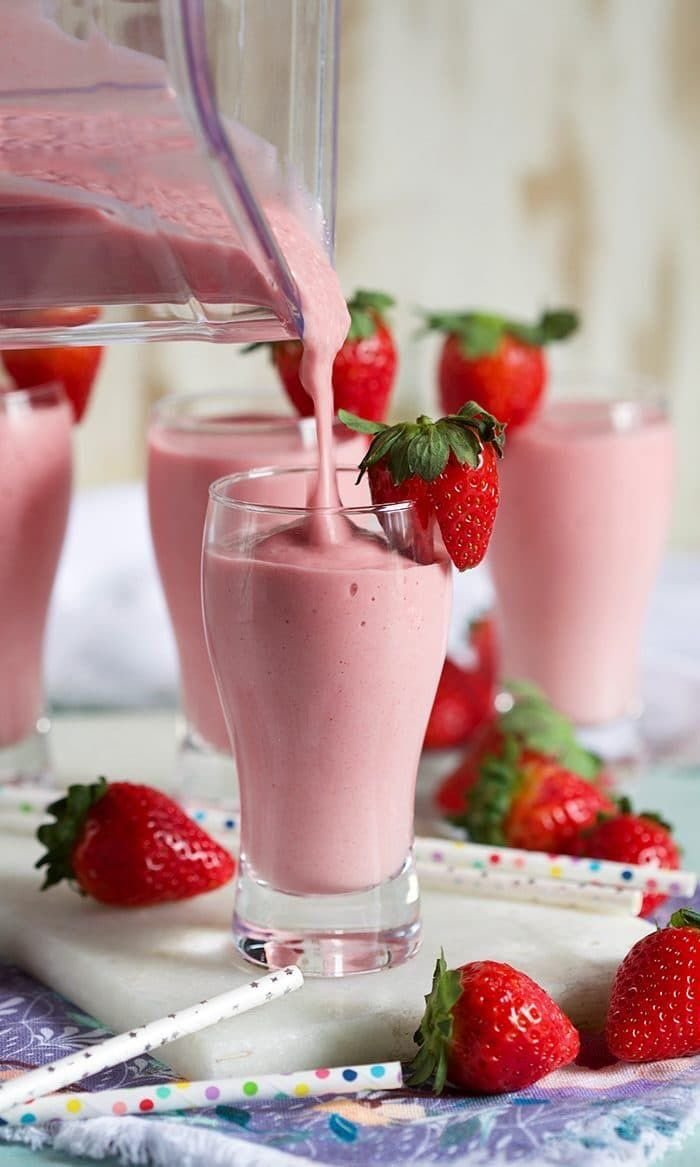 5. Serve: Pour into chilled glasses. Garnish with a fresh strawberry slice on the rim and a colorful straw, just like in your photo.