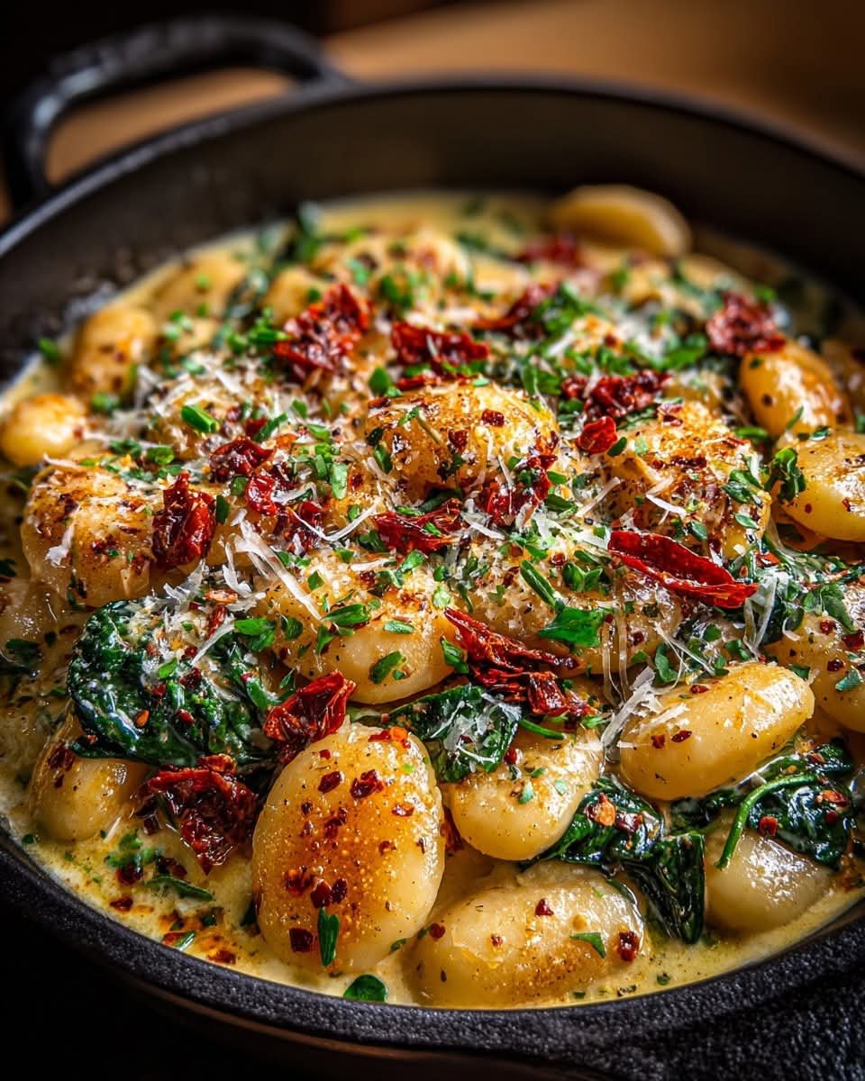 Add Parmesan cheese and sun-dried tomatoes. Simmer gently 3–5 minutes until sauce thickens slightly.