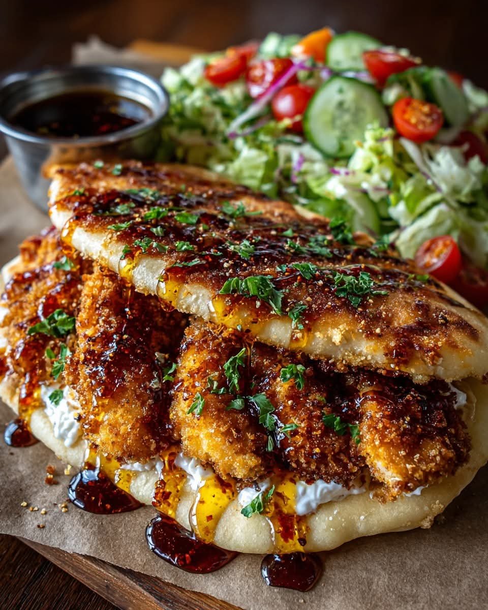 Crispy Baked Hot Honey Goat Cheese Chicken Pita with Garlic Sauce Drizzle