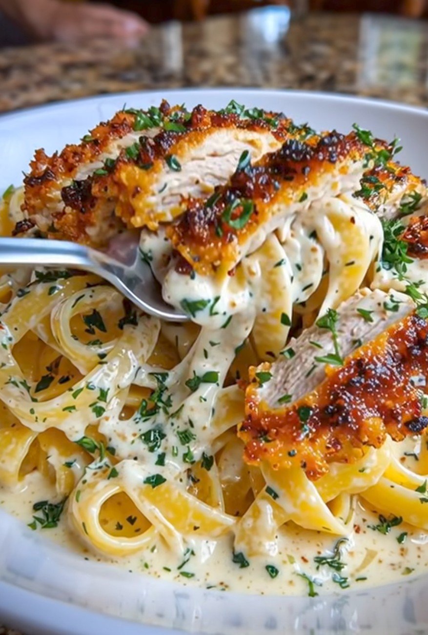 Crispy Chicken Fettuccine Alfredo