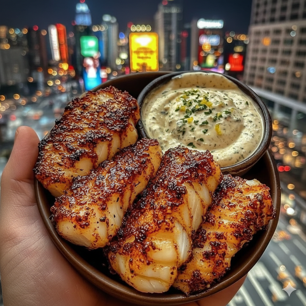 Crispy Garlic Butter Fish Bites with Creamy Herb Sauce