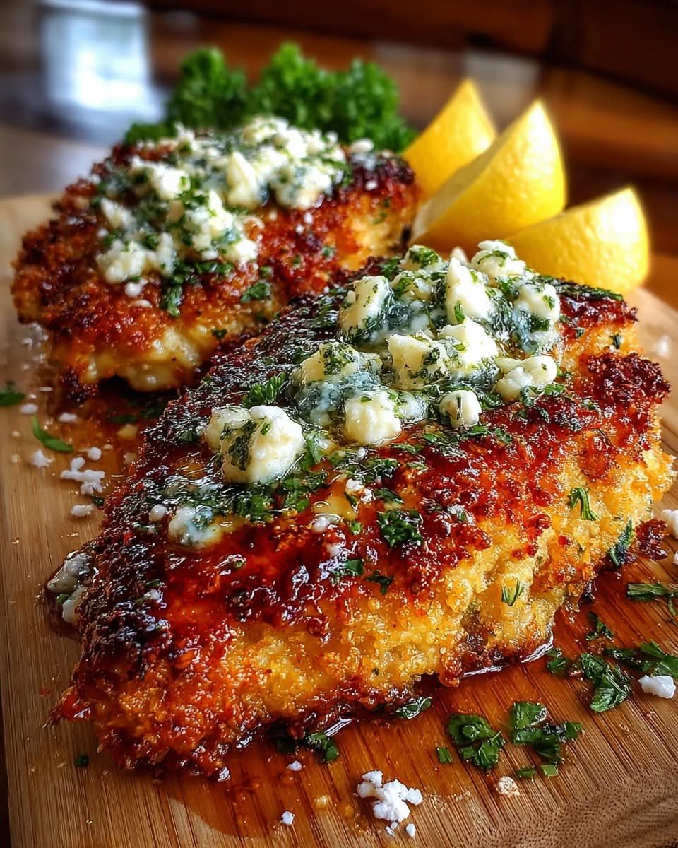 Crispy Hot Honey Lemon Feta Chicken with Panko Herb Crust
