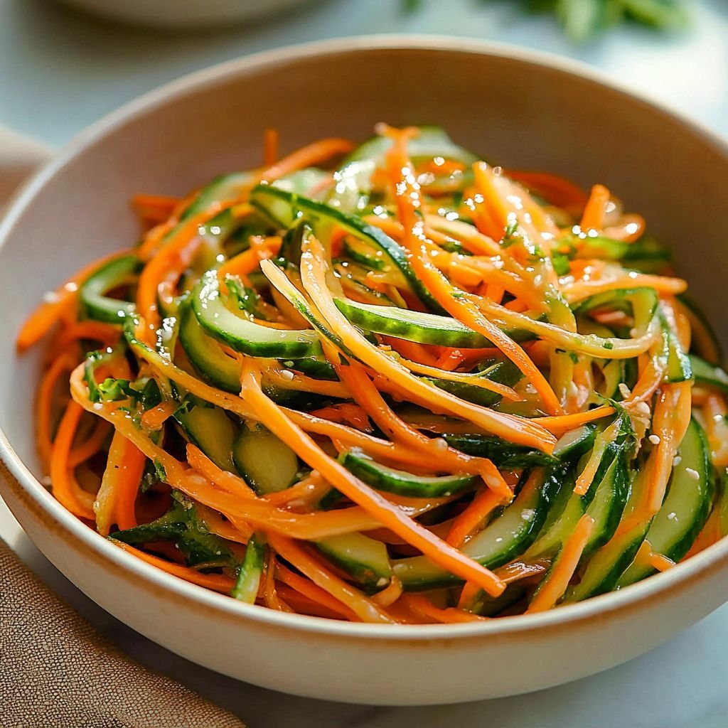 Combine: In a large mixing bowl, toss the prepared cucumbers and julienned carrots together.