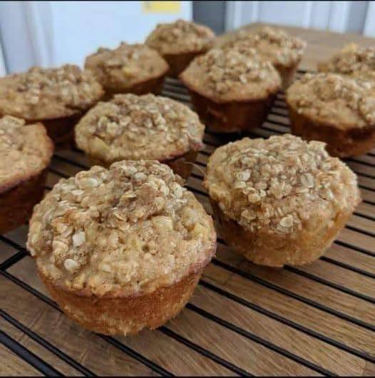 This recipe creates a dense, satisfying muffin with a lovely toasted oat topping.