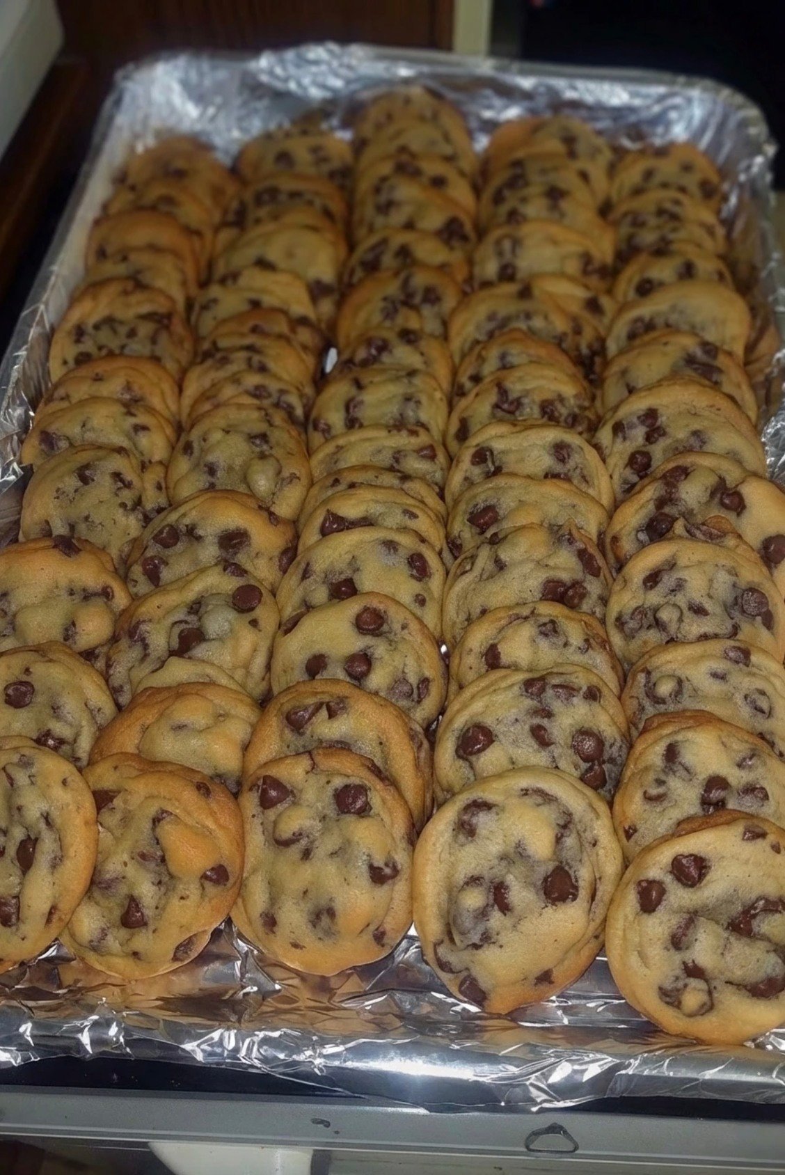 Sprinkle the flour, baking soda, and salt over the butter mixture, then stir until just combined. Fold in the chocolate chips.