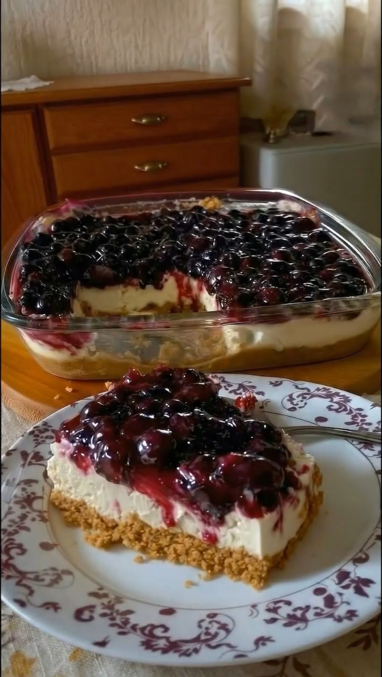 1. Spread cooled blueberry topping evenly over chilled cheesecake.