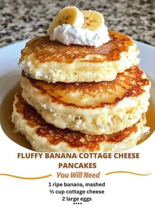 Fluffy Banana Cottage Cheese Pancakes