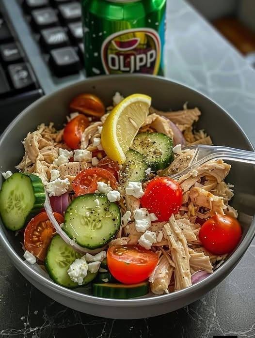 Season: If you haven’t already, lightly drizzle the olive oil and fresh lemon juice over the salad. Add a sprinkle of cracked black pepper and a dash of oregano to taste.