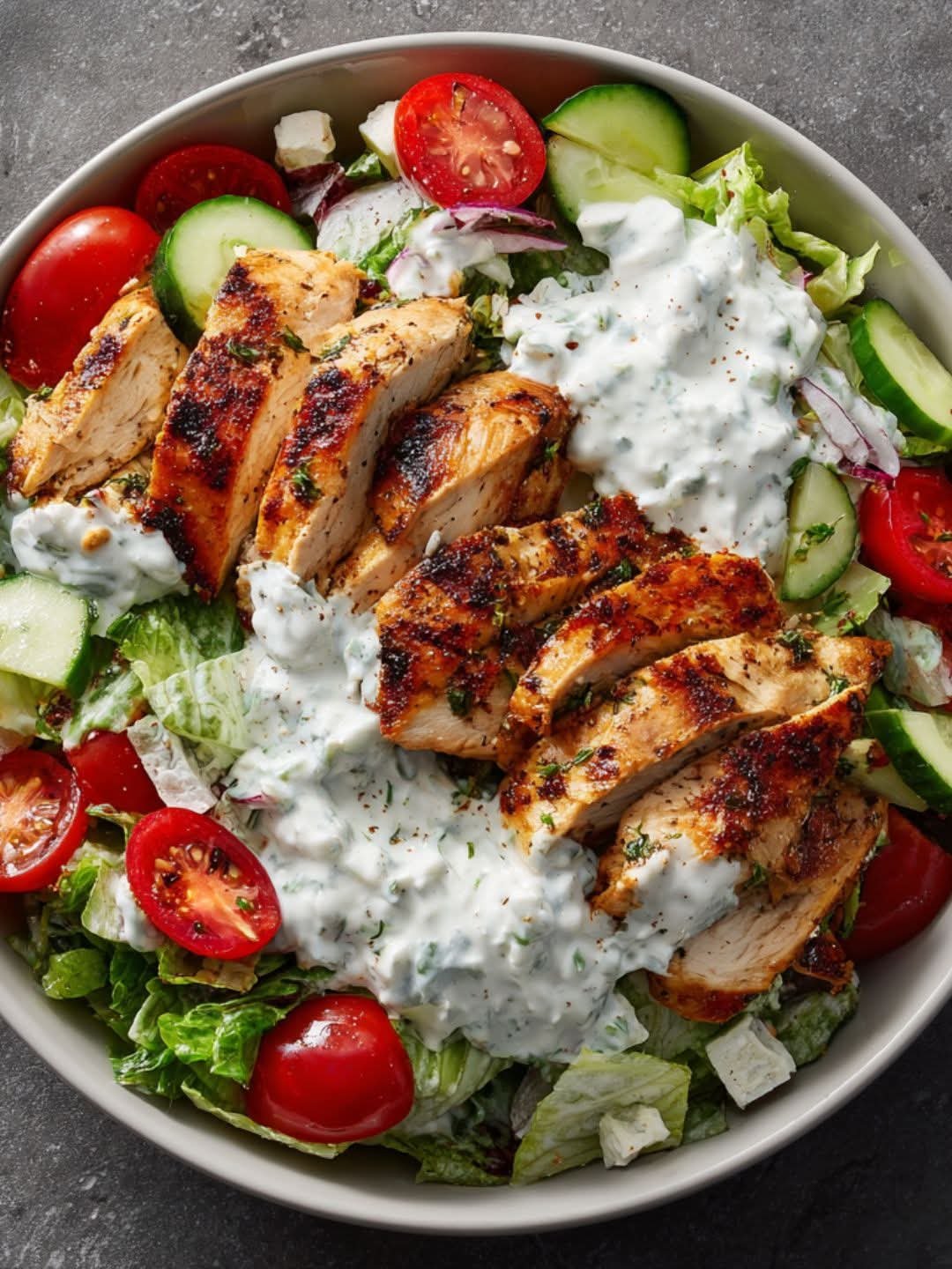 A crisp, colorful Fresh Greek-style salad loaded with crunchy romaine, sweet cherry tomatoes, cool cucumber, briny feta, and tender paprika-garlic chicken. Mediterranean flavor, weeknight speed.