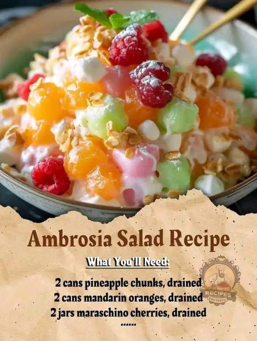 Prepare the Fruit: Ensure the pineapple, mandarin oranges, and cherries are thoroughly drained to prevent the salad from becoming watery.