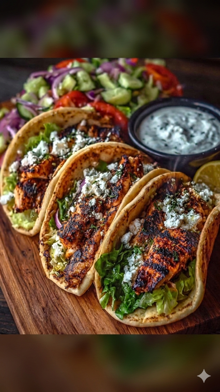 Greek Lemon Chicken Pita Wraps with Spicy Garlic Feta Sauce