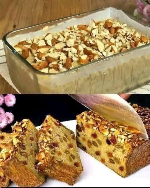 7. Bake: Place in the center of the oven and bake for 40–45 minutes. The loaf is done when a toothpick inserted into the center comes out clean and the almond topping is golden brown.
