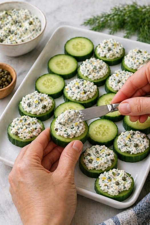 Crisp cucumber slices topped with a creamy, tangy herb spread—these bite-sized appetizers are refreshing, flavorful, and perfect for parties, snacks, or light lunches. They look fancy but come together in minutes!