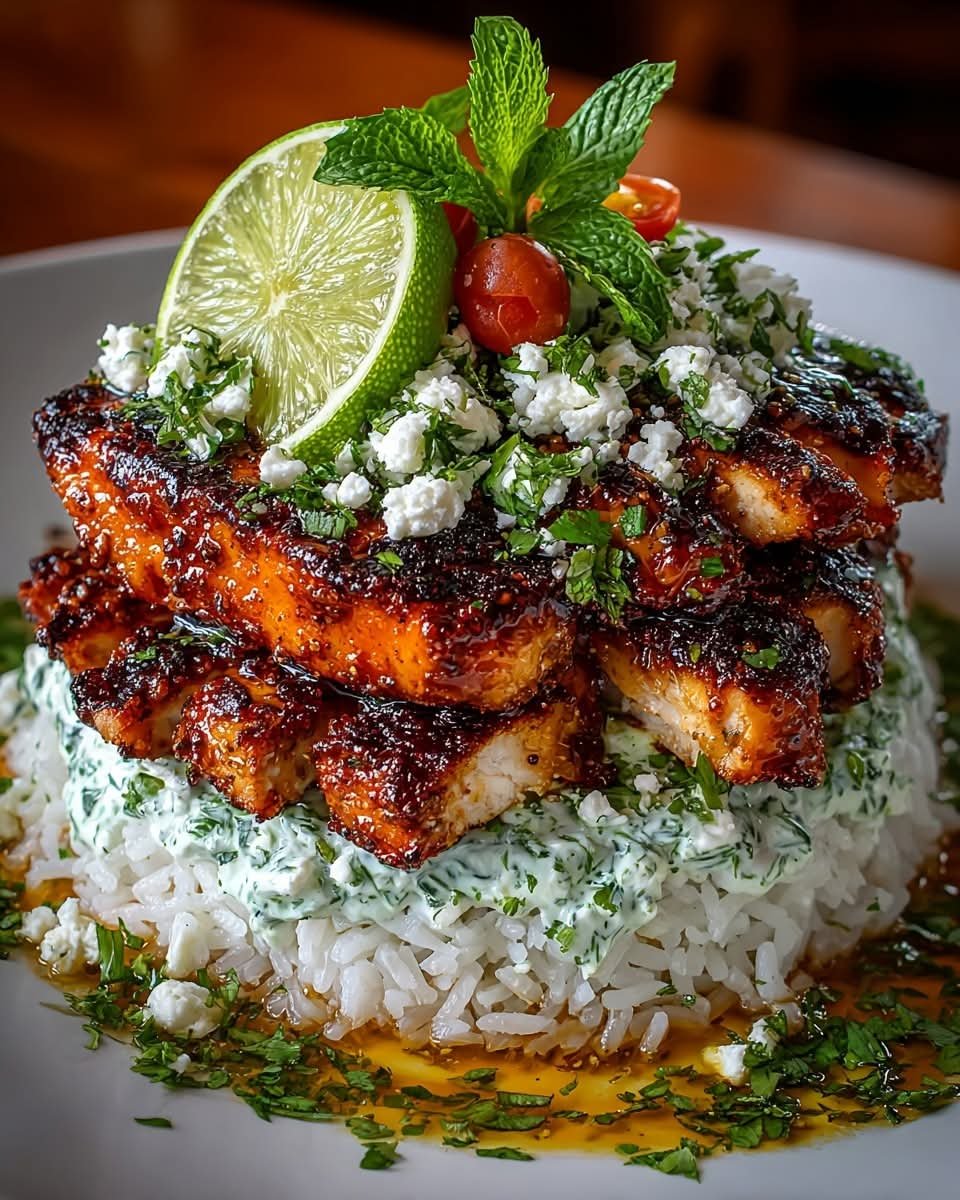 Honey Lime Chicken Rice Stack with Minted Feta Yogurt