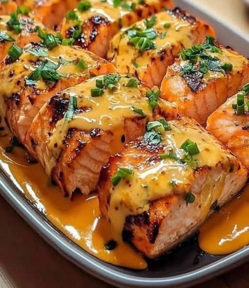 This honey mustard glazed salmon is a perfect fit for a “set it and forget it” meal, similar to the high-protein comfort foods you often develop. It features perfectly seared fillets topped with a creamy, vibrant sauce.