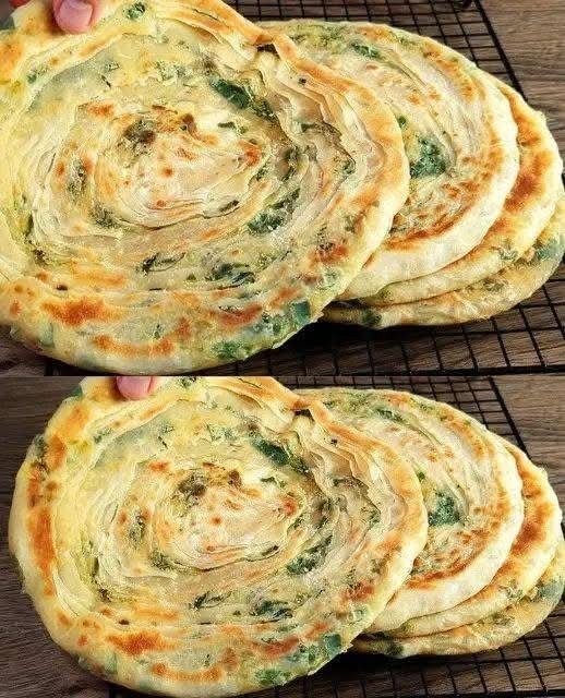Unlike a standard pancake, these are laminated. The “hot water dough” method ensures the bread remains soft and pliable even after frying, while the oil paste prevents the layers from sticking together, creating that signature “shredded” look.