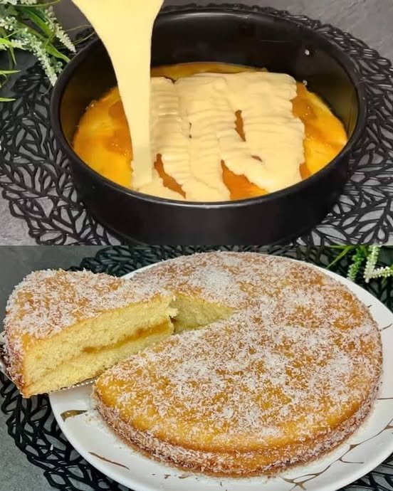 This cake can be served warm or at room temperature. The lemon flavor provides balance to the sweetness of the jam, while the coconut topping adds texture.