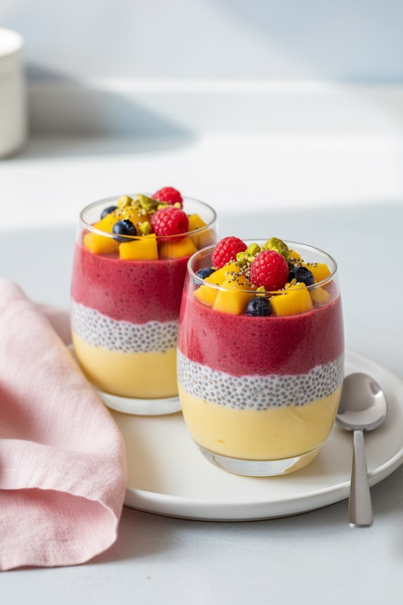 Mango Raspberry Sunrise Chia Cups
