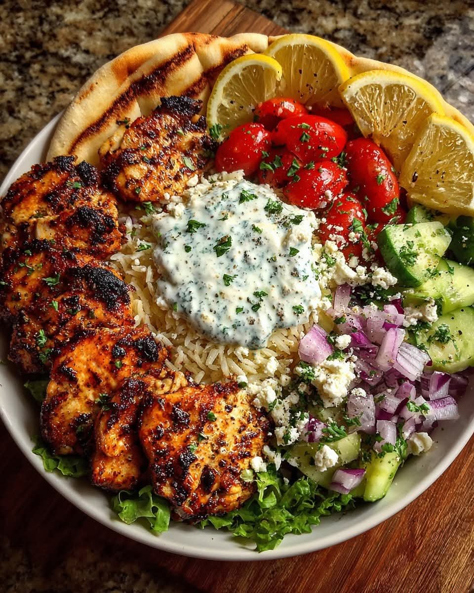 Mediterranean Chicken Pita Bowl with Garlic Feta Sauce