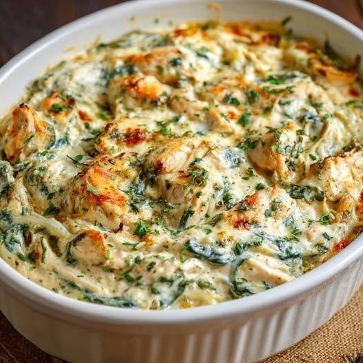 Mediterranean Creamy Crustless Chicken & Spinach Cheese Casserole