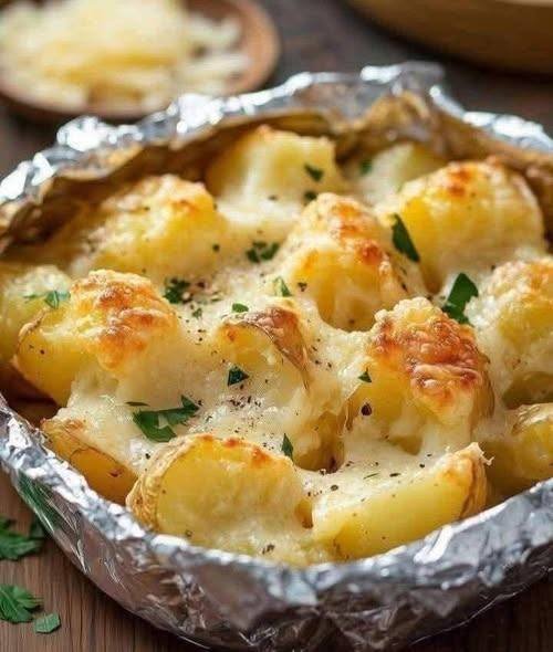 • Sprinkle grated Parmesan cheese over the potatoes and toss lightly to coat evenly.