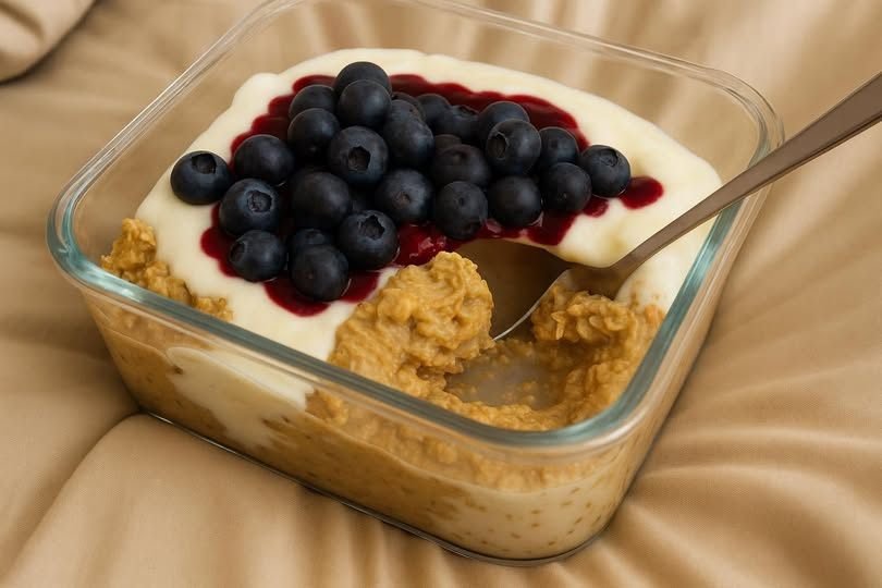 Assemble the Bowl: In a glass jar or breakfast bowl, layer the peanut butter oats at the bottom. Spread the sweetened yogurt layer directly over the oats.