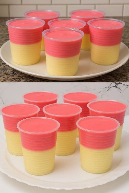 Pour this mixture into disposable cups (250 ml / 8.5 oz) filling them halfway, or use dessert glasses if you prefer.