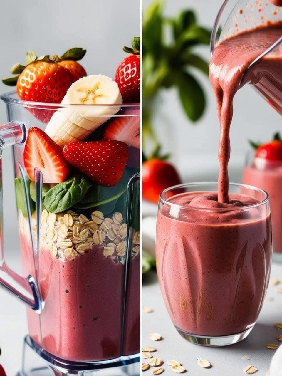 Strawberry-Banana-Oats-and-Spinach Smoothie – a deliciously healthy drink that combines sweetness, fiber, and a boost of greens!