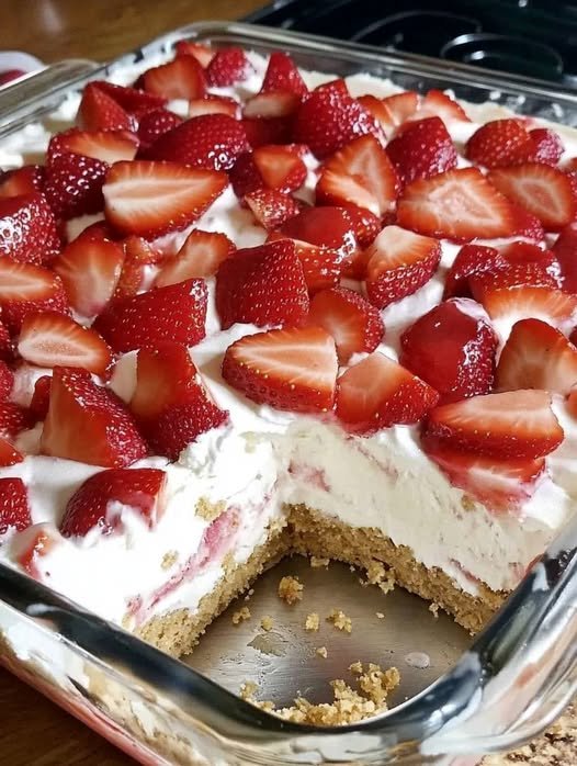 The secret of this texture that melts in your mouth? A mixture of cream cheese and strawberry ice cream that has been whipped with an electric mixer. And with the addition of graham cracker crumbs and succulent fresh strawberries, you receive a mouthwatering combination of flavors and textures!
