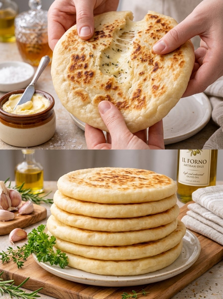 6. Pan-Sear ➔ Heat a lightly oiled skillet over medium heat. ➔ Cook each flatbread for 3–4 minutes per side until golden brown and the cheese inside is fully melted.