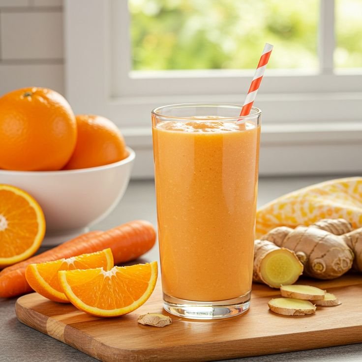 Layer the Blender: Place the liquid base—the coconut water and yogurt—into the blender first. This helps the blades spin freely. Add the oranges, carrots, ginger, and sweetener if using.