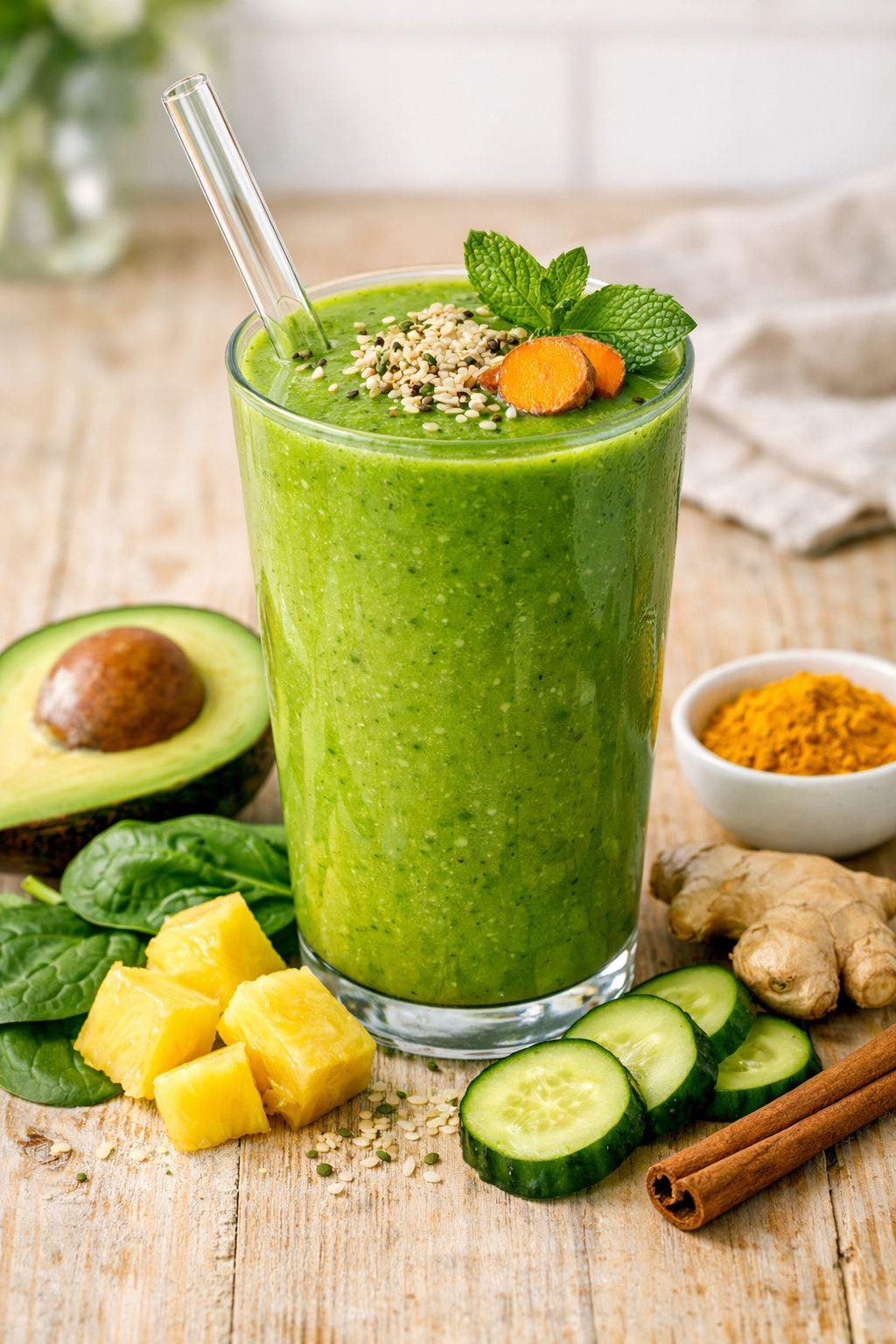 Garnish and Serve: Pour into a tall glass. Top with a sprinkle of hemp seeds, sesame seeds, and a dash of cinnamon. Garnish with fresh mint leaves and a slice of turmeric root for that picture-perfect finish.